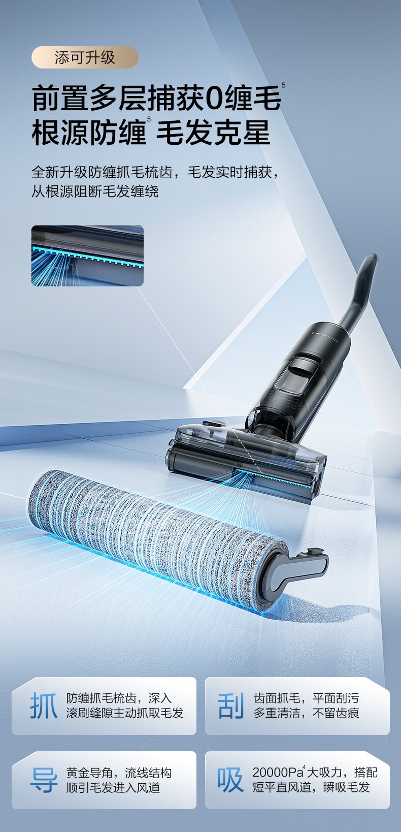 20000Pa 畅吸:添可躺平 0 缠毛 Stretch Max 洗地机 2499 → 1082 元国补